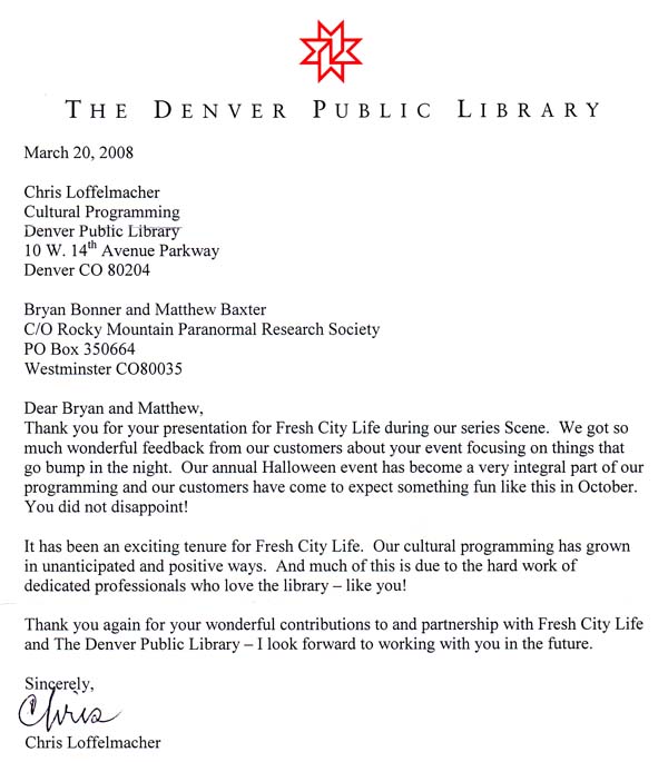 By Nancy Clark As dusk was settling over Denver on Saturday night, Bryan Bonner was also settling in to do what he generally does on a Saturday night...ghost-busting. This is not a profitable business, but rather one borne out of the fascination Bonner has always held for the occult and the inexplicable. He doesn’t work alone. In fact he has a crew of fellow ghost-busters who work alongside him including Intuitives—people with a special gift to “feel” the energy fields surrounding ghosts and the unseen—and technogeeks who operate the loads of highly specialized equipment that Bonner uses to detect the existence of ghosts—technology enough to fill a 12 ft. by 16 ft. space when compacted together. Bonner is a calm sort. He holds a job by day with a Fortune 500 company, builds websites on the side, and regularly comes to the rescue. Often his work is for historical purposes, verifying the unusual in buildings known for their infamous histories—like Mattie Silks’ former bordello-turned-restaurant in Lodo. And then there’s the unusual case (recall “Amityville Horror”) in which the ghosts possess the humans trying to occupy a home. Bonner actually has an email on record from a mother who called upon his services to rid her home of ghosts tormenting her four-year-old son. She wrote: It’s good to have my son back.” As his crew lugged equipment into the Denver Press Club Saturday (the club is reputed to be haunted by a male ghost named “Charlie” and a female in a blue dress), Bonner’s Intuitives roamed the building, peering into every nook and cranny, under the stairwells and into storage closets. (There’s always a ghost under the bed.) They paused in each room to take in the vibrations. Both Intuitives were drawn to the business office where they proclaimed, “This is it. Feel the energy. It’s along that wall, by the safe. Do you feel the rage?” they looked at each other knowingly. “I really don’t want to hear any more,” I, the informal tour guide, pleaded before taking leave. Later that night, a DPC member dropped by to check on the ghost-buster’s findings and found that the pilot light in the boiler room has gone out. Xcel responded to cut the gas to the boiler which was last replaced in 1995 after the old one broke in a weeklong occurrence of sub-zero weather. Then, the club’s bartender Justin had to spend the night in the place monitoring propane heaters to keep the pipes from freezing. And fortunately for the historically cash-poor club, the membership had raised just-enough from its ’95 Damon Runyon dinner featuring Jimmy Breslin to fund the new boiler. At 3 a.m., the ghost-busters-turned-gas-busters vacated the club having witnessed nothing particularly haunting...except if you count the fact that the pilot light had never before extinguished on its own. Call it coincidence. Call it rage. Call the club president. Which I did. “I’m afraid I may have to resign as treasurer. The ghost-busters discovered The Rage surrounding the club safe.” He burst out laughing, “Think about it. For the entire existence of the club the rage has revolved around the safe.” It’s enough to spook your inner spirit: Isn’t coincidence sometimes unsettling? And do the ghosts we battle come in other forms than what darkness causes us to expect? ![]() ![]() ![]() In late February 2006, TAPS and the Rocky Mountain Paranormal Reseach Society joind together to investigate the Elk Horn Lodge in Estes Park, Colorado. ![]() This